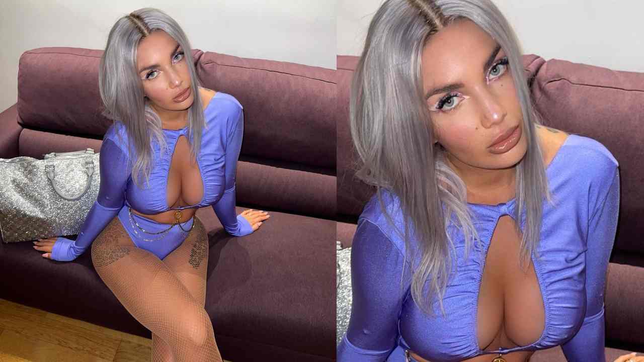 In un recente post, la Lamborghini ha voluto mostrare la foto prima del suo concerto preferito avuto questa estate. Nello scatto la si vede seduta su un divanetto con un outfit completamente viola e davvero striminzito. Nella parte superiore, presente una profondissima scollatura che mette in risalto il seno. Un décolleté che ha messo in seria difficoltà l’indumento.