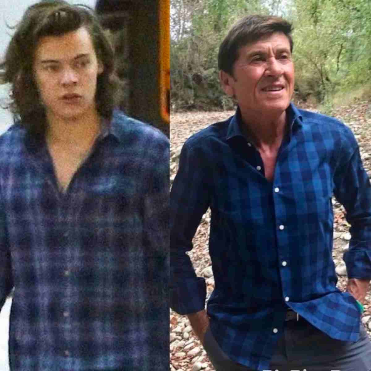 Gianni Morandi e Harry Styles hanno lo stesso look, ma chi è che copia chi? Le foto dei due hanno fatto il giro del web.