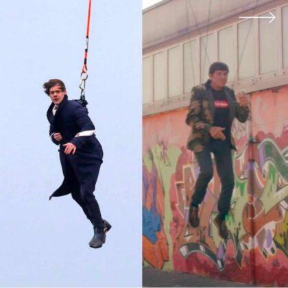 I fan hanno visto l’artista bolognese e Styles indossare lo stesso completa rosa, ma anche la stessa camicia hawaiana e una tuta blu scuro col marchio Nike. È stata notata anche la stessa giacca nera con le paillettes, così come la stessa camicia a scacchi blu. Come se non bastasse, i due hanno girato anche un videoclip dove si sono fatti appendere con un elastico.