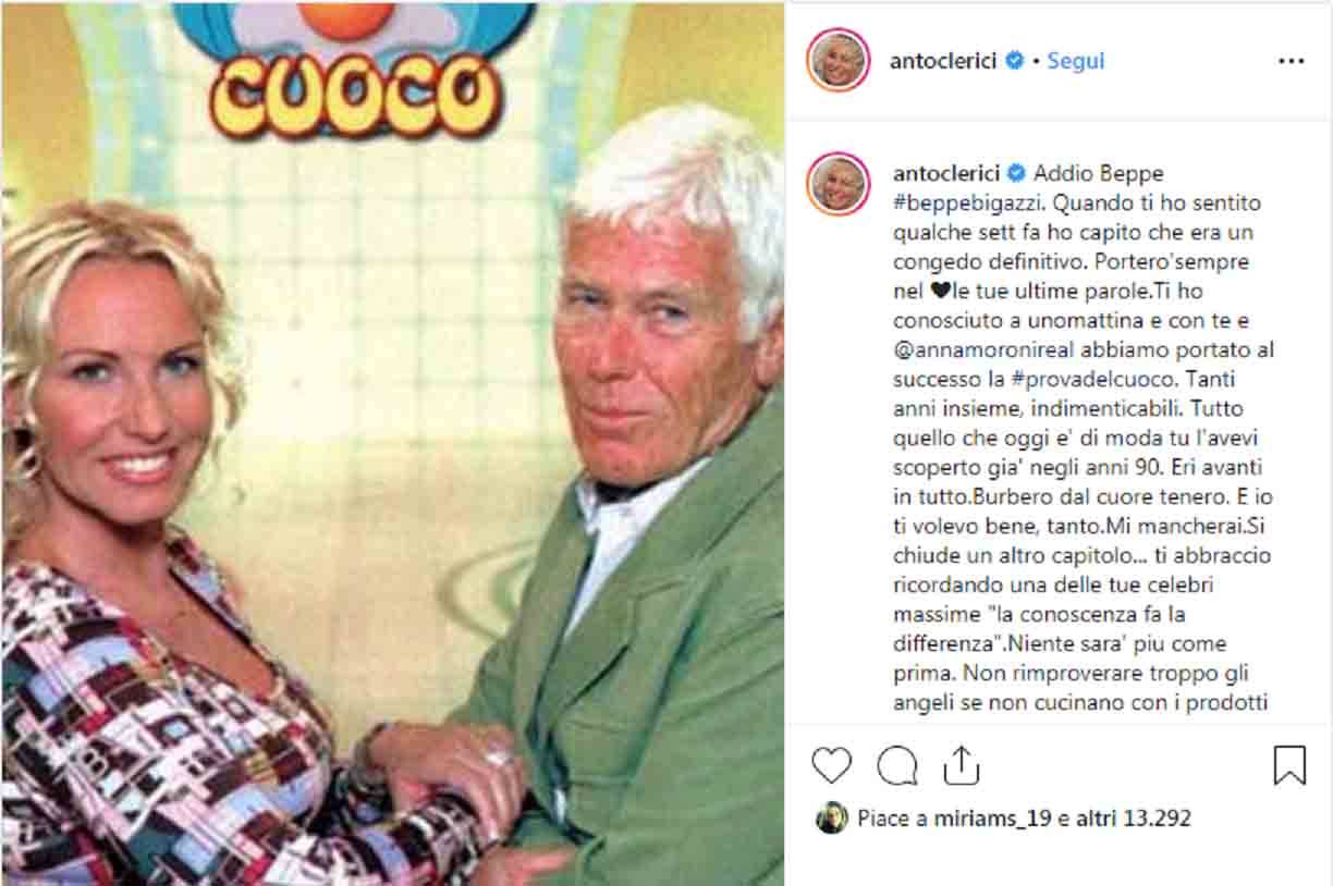 Morto Beppe Bigazzi, il messaggio commovente di Antonella Clerici