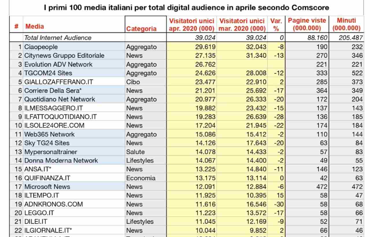 Informazione online, dati Comscore Agosto: grande successo di Web365